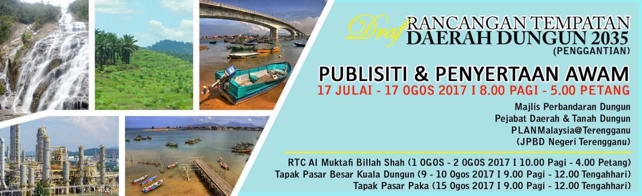 Draf Rancangan Tempatan Daerah Dungun 2035 (Penggantian) ini disediakan dengan peruntukan Seksyen 16(1) Akta Perancangan Bandar dan Desa 1976 (Akta 172). Dokumen ini merupakan satu-satunya dokumen perancangan yang akan digunakan secara sah sebagai mekanisme perancangan Rancangan Rempatan yang menyatakan semua cadangan pembangunan tanah dan fizikal yang terperinci. |