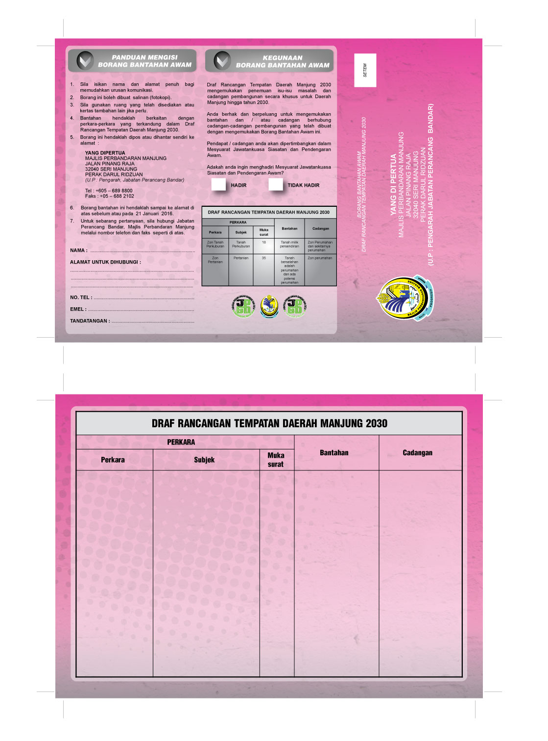 - Menjadikan Laporan Rancangan Tempatan Daerah Manjung 2030 sebagai dokumen untuk perancangan pembangunan khususnya dalam aspek kebenaran merancang.