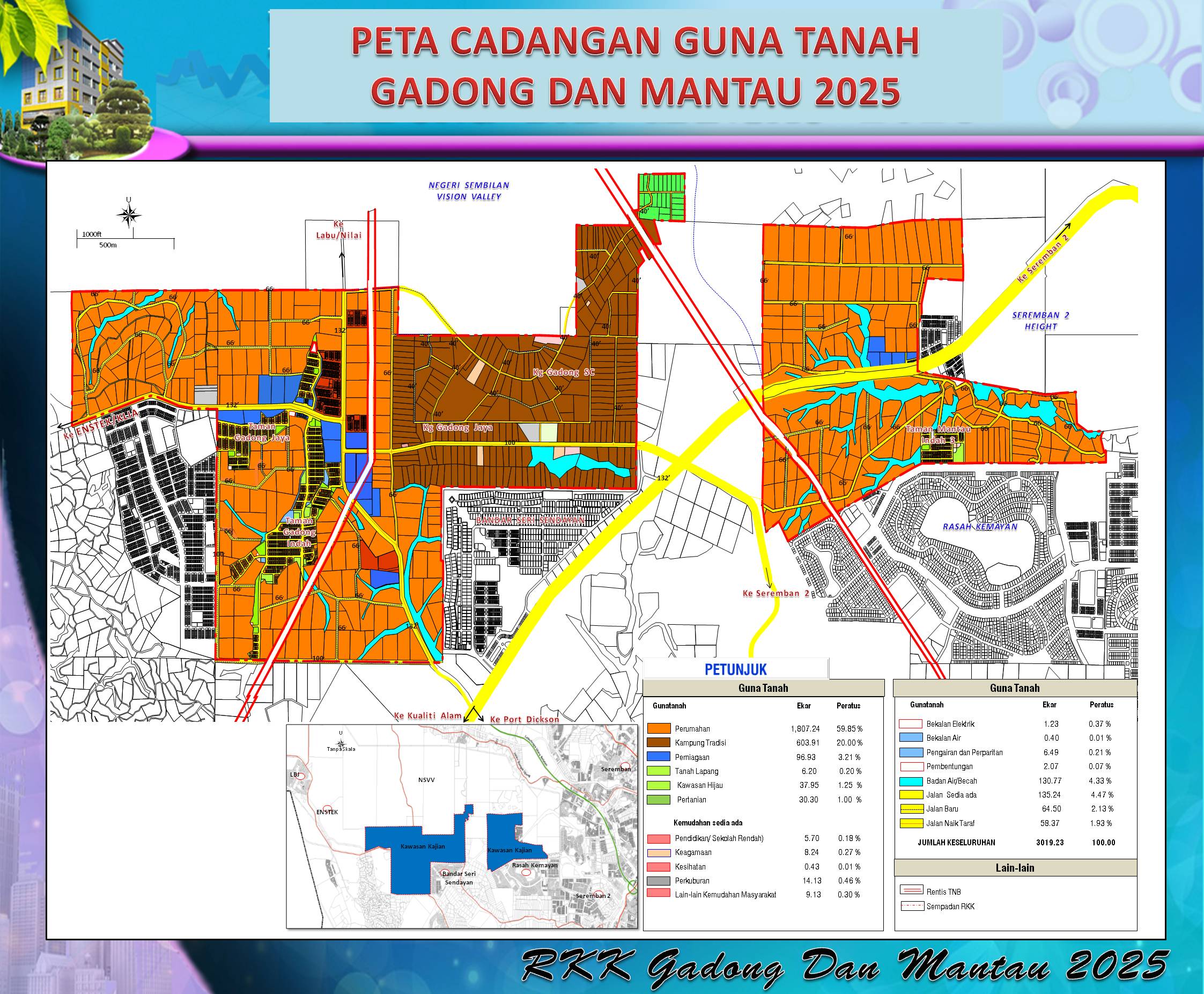 Rancangan Kawasan Khas(RKK) Gadong dan Mantau 2025 adalah dokumen yang menjelaskan hala tuju perancangan dan pembangunan di kawasan Gadong dan Mantau bagi tempoh perancangan sehingga 2025. RKK Gadong dan Mantau 2025 adalah rancangan pemajuan yang disediakan di bawah Seksyen 16B Akta Perancangan Bandar dan Desa 1976, [Akta 172]. Matlamat Kajian adalah:- Menyediakan Satu Pelan Induk Perancangan Guna Tanah Berserta Garis Panduan Perancangan Bagi Memandu Arah dan Menggalak Pembangunan yang Lestari Objektif Pembangunan adalah :-