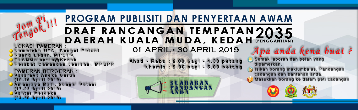 Rancangan Tempatan Daerah Kuala Muda, Kedah ini mengandungi petikan daripada Laporan Draf Rancangan Tempatan Daerah Kuala Muda 2035. Segala penjelasan dan perincian lanjut perlu merujuk kepada laporan Draf Laporan Draf Rancangan Tempatan Daerah Kuala Muda 2035. Rancangan Tempatan Daerah Kuala Muda mengandungi: