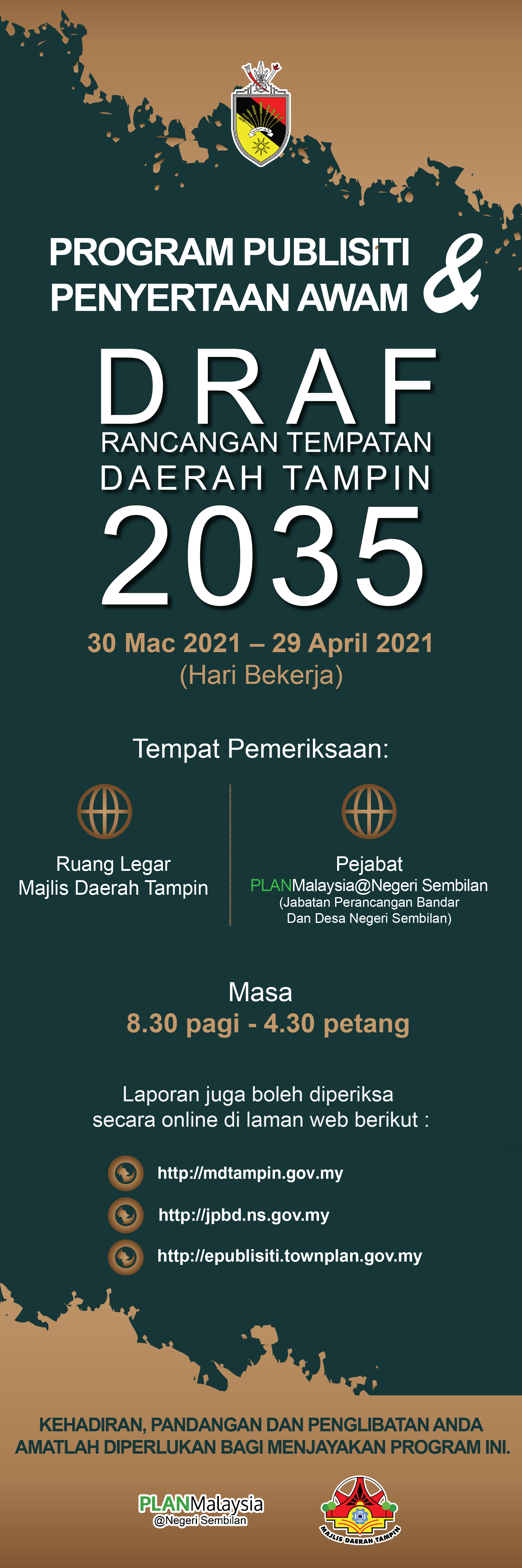 Perincian Laporan Draf Rancangan Tempatan Daerah Tampin 2035 mengandungi tiga (3) jilid utama yang terdiri daripada :-