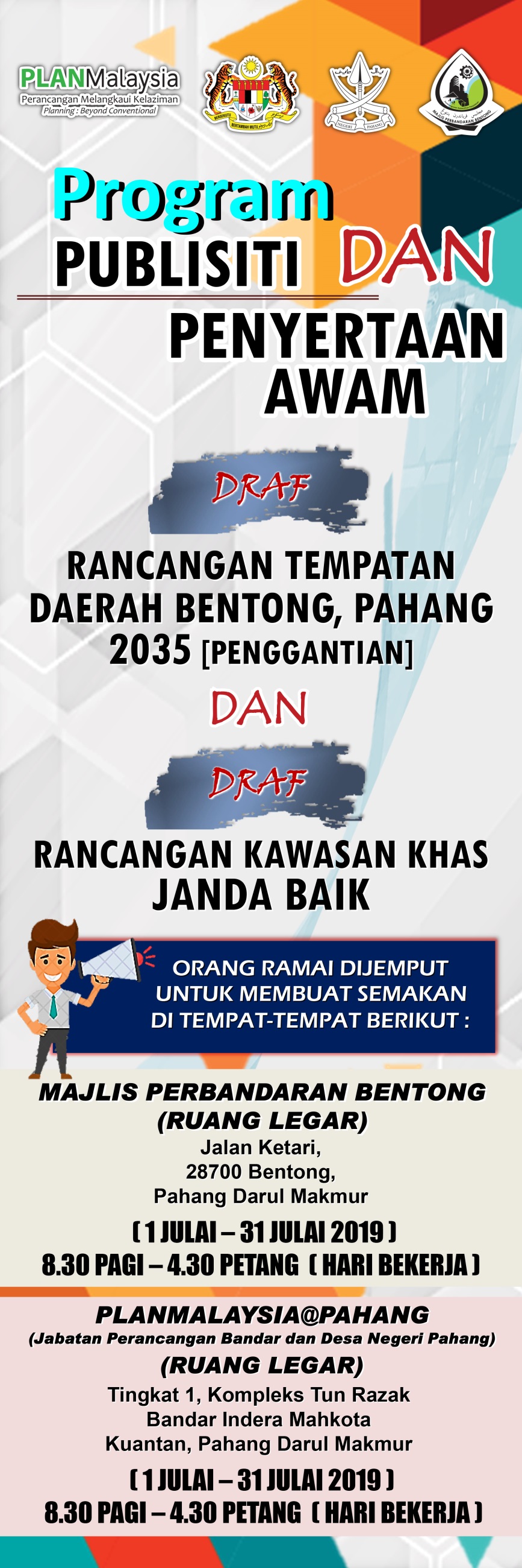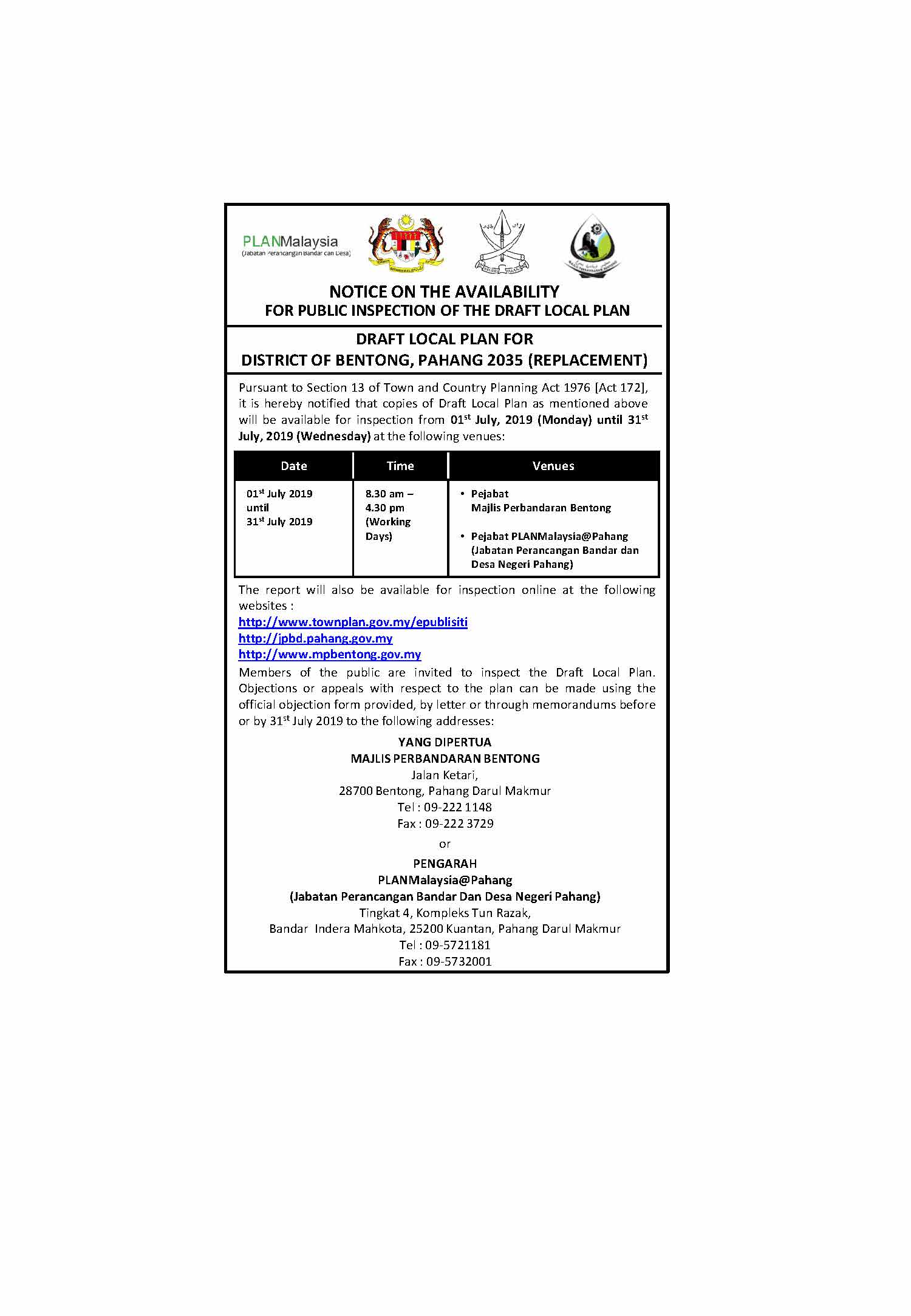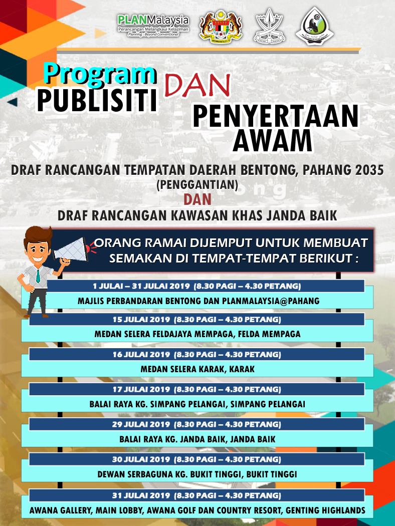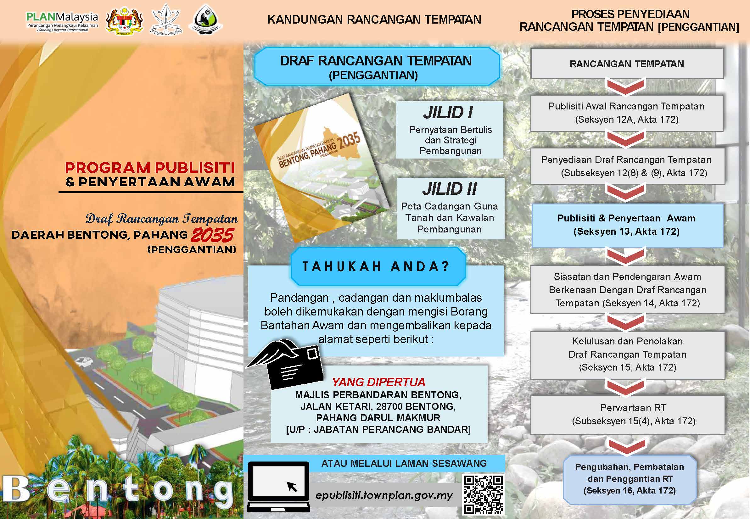 Rancangan Tempatan (RT) merupakan satu dokumen yang disediakan selaras dengan peruntukan seksyen 12, Akta Perancanagn Bandar dan Desa 1976 (Akta 172) dan Manual Penyediaan Rancangan Tempatan (Pindaan 2001, PLANMalaysia) Menurut peruntukan di bawah Akta Perancangan Bandar dan Desa 1976 (Akata 172), Pindaan Rancangan Tempatan boleh dilaksanakan mengikut kepada peruntukan berikut : Visi |